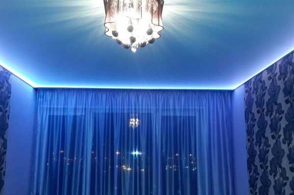 Светодиодная подсветка по периметру натяжного потолка – неотъемлемый атрибут большинства современных интерьеров. Это достаточно эффектный прием, позволяющий визуально увеличить высоту помещения и сделать его светлее. Как правило, карниз для подсветки выбирают белого цвета с гладкой фактурой и крепят его уже после того, как ближе к натяжному полотну была приклеена светящаяся лента. Диоды можно выбрать любого оттенка, существуют также варианты с переливающимися цветами и разными режимами работы (наподобие елочных гирлянд).