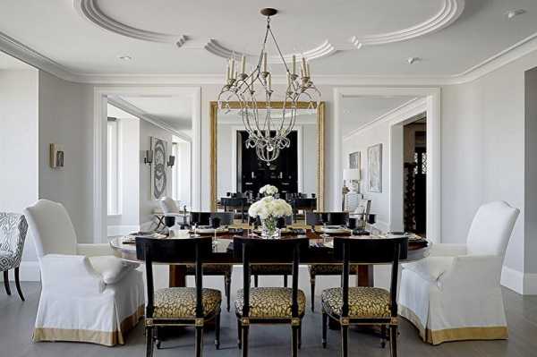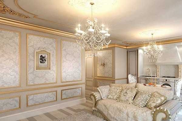 Согласно общему правилу, чем выше и просторнее комната, тем шире и заметнее должны быть молдинги. Вместе с тем необходимо придерживаться баланса, подбирая гладкие элементы к богато декорированным стенам и потолку, а роскошную лепнину – к однотонным. Хорошо, если расцветка, рисунки или узоры багетов перекликаются с какими-либо вертикальными линиями – колоннами, арками, порталами, настенными панно.