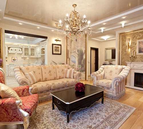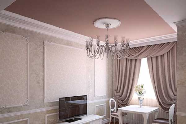 Но многие предпочитают привычный декор, особенно когда интерьер оформлен в классическом стиле. Натяжной потолок с плинтусом делает комнату более нарядной и торжественной, в то время как с маскировочной лентой помещение выглядит простым.