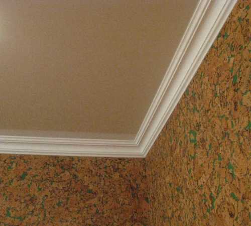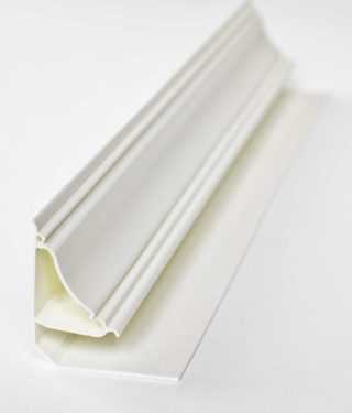 Пластиковые галтели прочные и лёгкие, но не гибкие, поэтому стены должны быть прямые. Для подрезки понадобится ножовка. По цене занимают промежуточное место между пенопластовыми и полиуретановыми багетами.