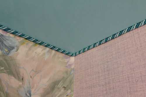 Это не совсем плинтус, но для заделки щели между натяжным потолком и стенами используется довольно часто. Интересные переплетения нитей 2–4 цветов, нередко с блестящими металлическими вставками, смотрятся просто восхитительно среди классических, восточных и деревенских мотивов оформления комнат.