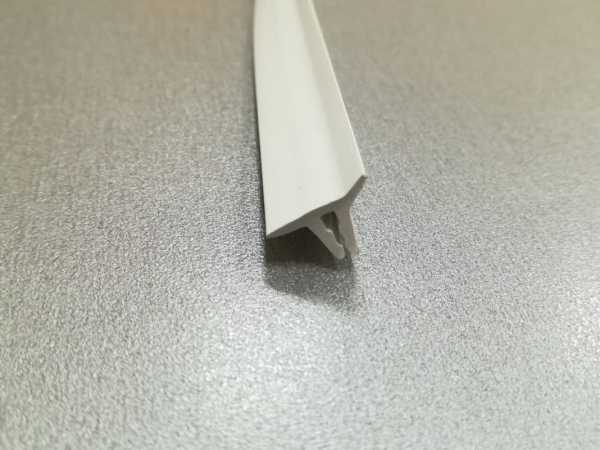 - Наиболее распространенные Т-образные заглушки. Благодаря раздвоенному концу такая заглушка предохраняет пространство за собой от появления пыли, так как закрывает собой часть стены и часть натяжного потолка. Обычный плинтус находится на расстоянии, так как материалы изготовления плинтуса и ПВХ ткани при соприкосновении могут вызывать взаимную химическую и механическую коррозию.