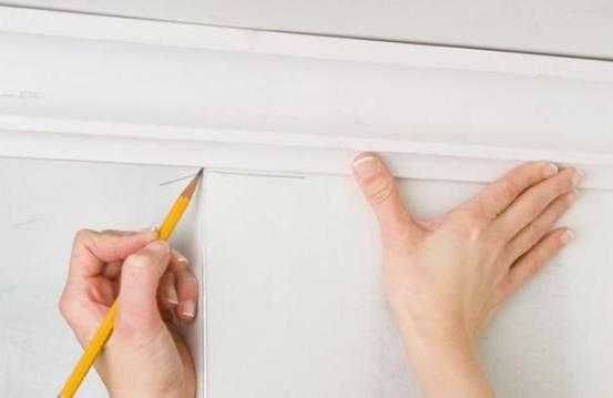 - Используя метр и карандаш, заранее начертите линию, по которой будет установлен плинтус.