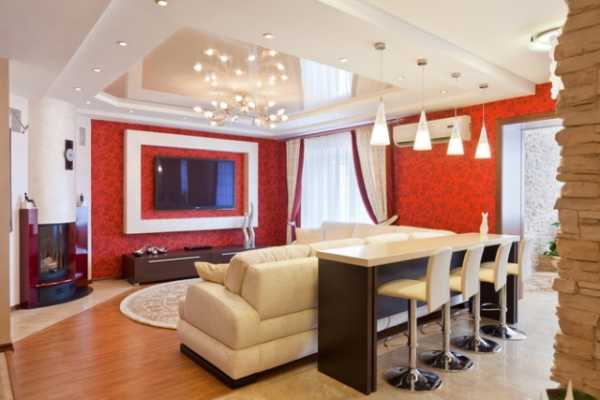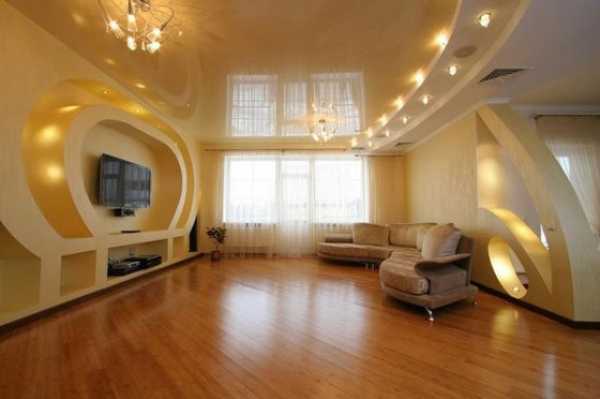 Трехуровневые потолки в зале — материалы, фото вариантов