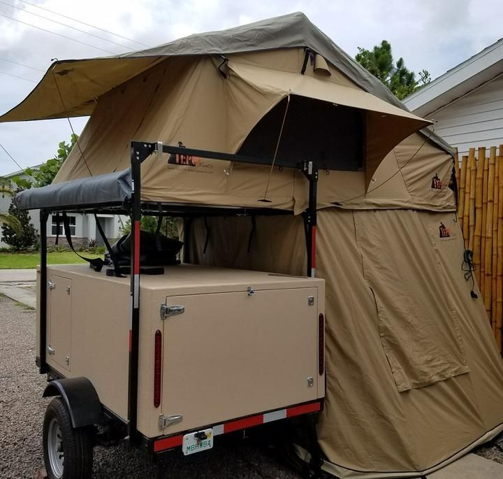 - Складной кемпер представляет собой палатку, разложенную на платформе. В сложенном виде он выглядит как самый обычный прицеп. Его недостаток в том, что каждый раз его нужно разбирать и собирать.