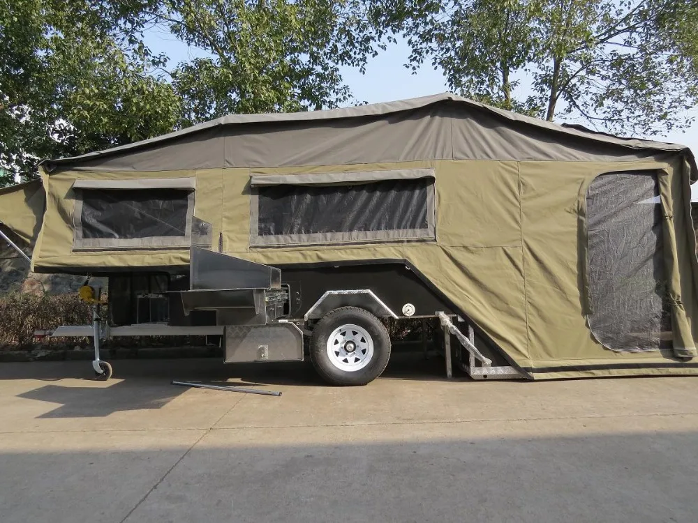 - Некоторые модели складных прицепов для кемпинга имеют выдвижные части, которые обеспечивают дополнительное жилое пространство в палаточном лагере.
