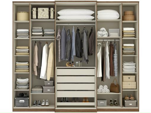 Наилучшим образом с этой задачей справляется шкаф. Одежда здесь располагается не на крючках, а на вешалках, а, значит, не мнется и не деформируется, и к тому же скрыта от глаз посторонних случайных людей.