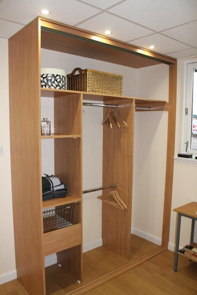 - Минимальная глубина – 40 см. При этом вместо обычной штанги нужно устанавливать торцевую или монтировать выдвижные вешалки