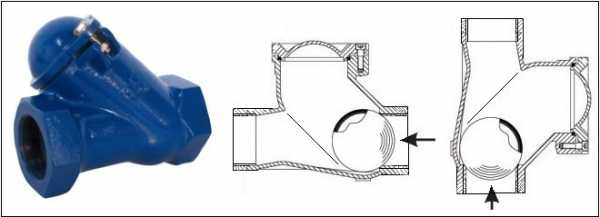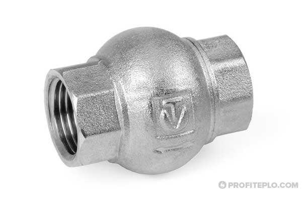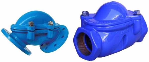 Запорным элементом клапанов обратных шарового типа, как уже говорилось выше, является шар, который может быть изготовлен из чугуна, стали или алюминия. Достаточно часто для обеспечения большей надежности такого затвора в закрытом состоянии шар дополнительно покрывают слоем резины. Шаровые обратные клапаны, которые могут устанавливаться как на горизонтальных, так и на вертикальных участках трубопроводов, несмотря на простоту своей конструкции, надежны в эксплуатации.