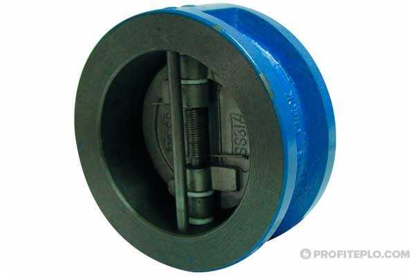Клапан обратный двухстворчатый чугунный межфланцевыйЗа предотвращение неправильной циркуляции отвечает специальная ось, пересекающая проходное сечение, на которой закреплены створки. Считается, что данная модификация обратного клапана является самой надежной. Устройство подходит для систем с высоким давлением.