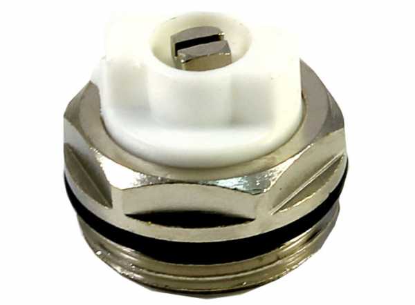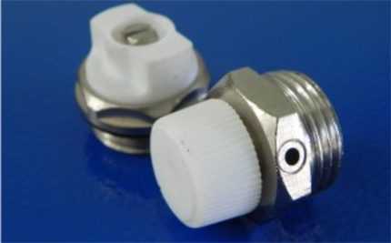 Различные производители изготавливают шлицы болтов как для отвертки, так и для шестигранной головки. Окончание винта имеет форму конуса, он входит в отверстие, где происходит контакт с теплоносителем. Чтобы спускаемый воздух выходил из батареи, в корпусе есть отверстие, диаметром 2 мм.