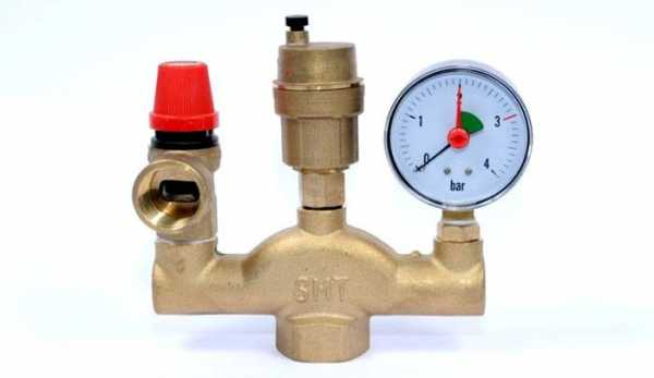 - Воздухоотвод с наличием встроенного предохранителя. Эта разновидность имеет несколько другой принцип действия, нежели у двум предыдущих вариантов. За счет предохранительного клапана контролируется давление в теплосети. Если этот показатель превышает критическое значение, обычно равное 15 атмосфер, тогда клапан активируется и происходит процесс вывода лишнего воздуха. Устройство позволяет исключить возможность появления внезапных гидроударов, которые негативно влияют на элементы отопительной системы. Использование такого крана особенно актуально в системах, где трубопровод выполнен из металлопластика либо полипропилена, то есть где чрезмерное давление может повредить теплосеть.