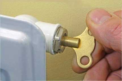Процесс удаления воздуха осуществляется при помощи специального ключа, идущего в комплекте к устройству, либо отверткой.Процесс удаления воздуха осуществляется при помощи специального ключа, идущего в комплекте к устройству, либо отверткой.
