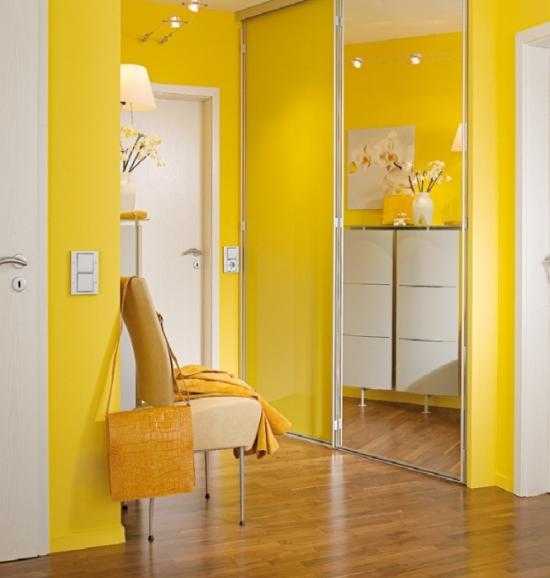 Жёлтый, отличный выбор для прихожей он яркий, располагающий и компенсирует отсутствие солнечного света.