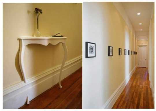 В первую очередь выявите недостатки коридора. Если он узкий, то делайте акцент на зрительное увеличение и использование компактной, но функциональной мебели. Дизайн длинного коридора предусматривает следующие решения.