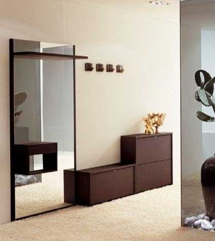 Если у него будет зеркальная конструкция, то это поможет вам визуально увеличить пространство прихожей, а закрепление под потолком треугольных антресолей поможет создать иллюзию подвесных конструкций, которые, кстати, будут очень практичными.