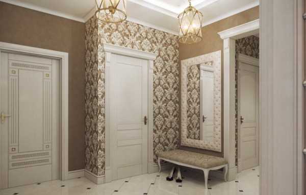 - Поклейка обоев. Обязательно выбирать моющиеся обои повышенной прочности. Качественные приятные глазу виниловые обои отлично впишутся в дизайн прихожей и коридора.