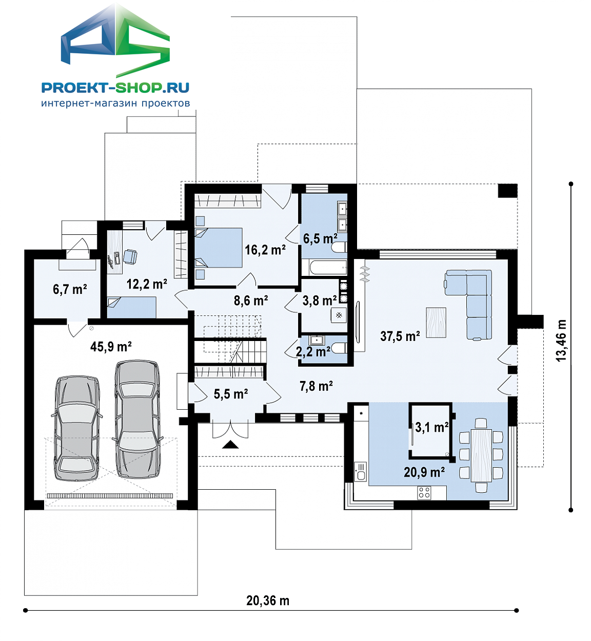 Проекты одноэтажных домов с гаражом, фото, цены, готовые и типовые. Каталог содержит планировки, планы и чертежи