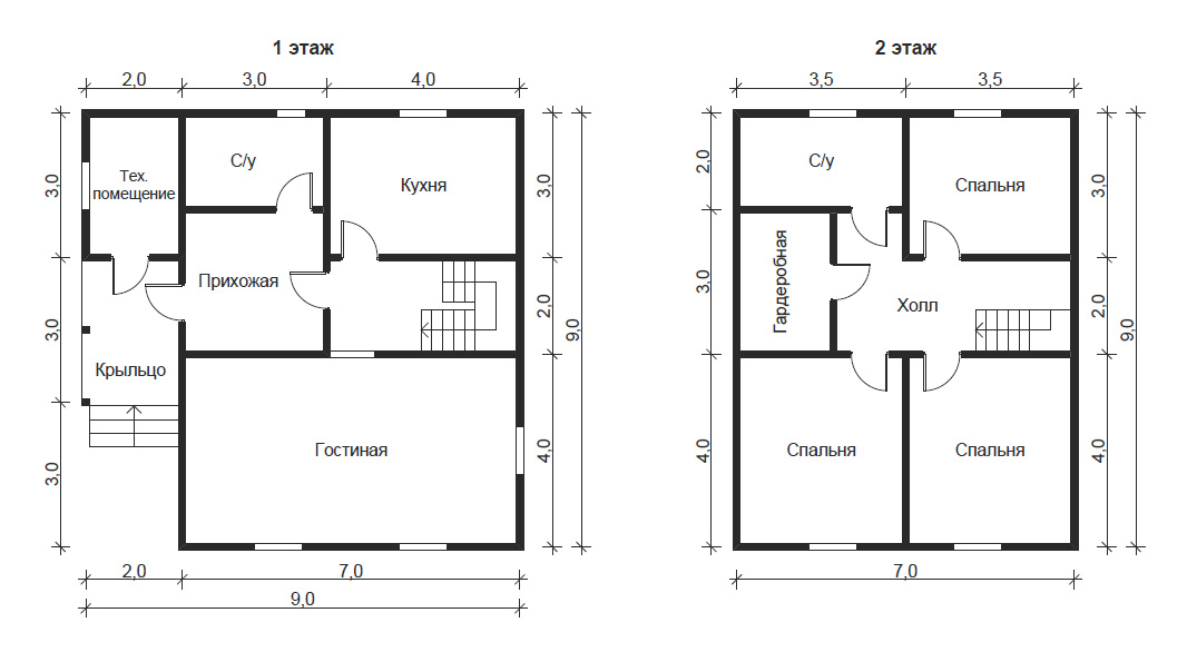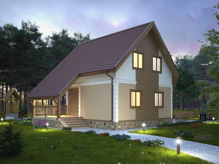 Проекты домов 7 на 8 с мансардой: фото, планировки и чертежи