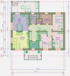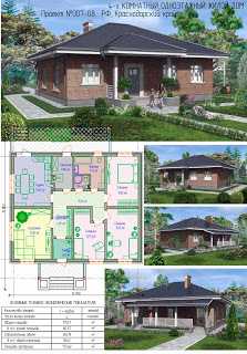 | Проект одноэтажного четырёхкомнатного коттеджа |