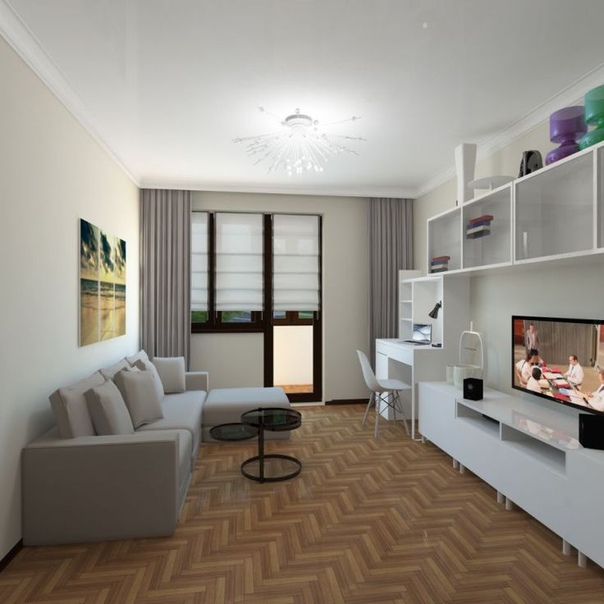 Дизайн помещений однокомнатной квартиры требует повышенного внимания к функциональности. Нередко необходимо, чтобы одна комната выполняла функции и гостиной, и спальни, и кабинета. Используя возможности модульной мебели, реализовать задуманное будет не так сложно. У окна лучше всего поставить письменный стол с удобными стеллажами для книг.