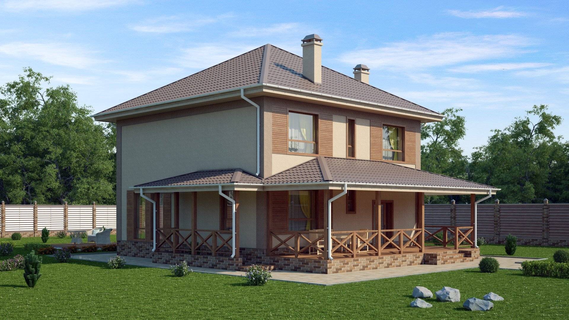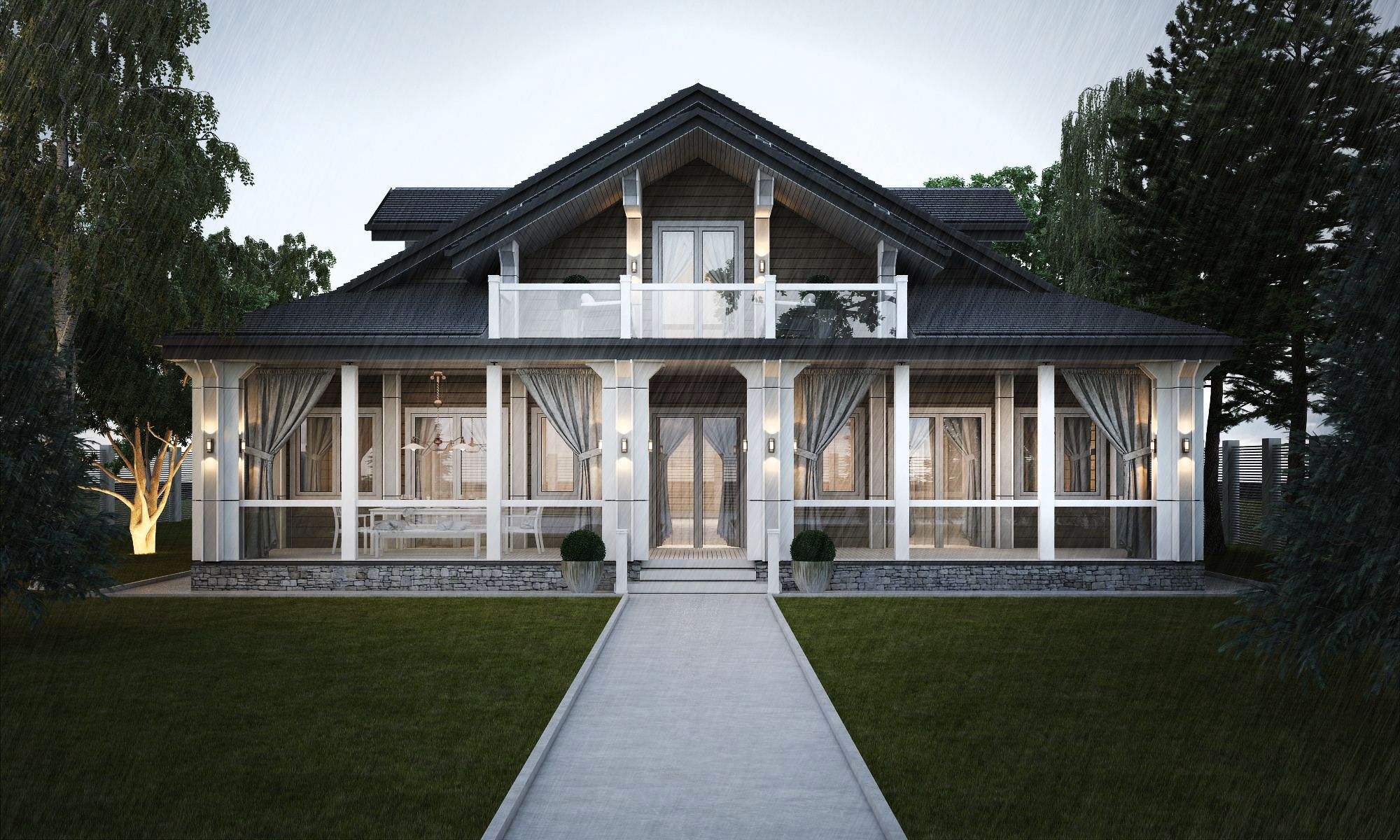| Кровля | — Форма крыши выполняется согласно проекту. — Фронтоны каркасно-щитовые, отделываются крашенной имитацией бруса камерной сушки, 13,5-16 мм (сайдинг). — Во фронтоны устанавливаются вентиляционные решётки. — Стропильная система выполнена из доски сечением 40х200 мм (шаг 0,58 м). — Гидроизоляционная мембрана выполняется по стропильной системе через контрейку 50х40 мм. — Порешетник: обрезная доска толщиной 20-22 мм с шагом 150-200 мм. — Покрытие крыши: металлочерепица, толщина 0,45 мм (цвет на выбор). — Водосточная система (пластик, Дёке). — Снегозадержатели. |