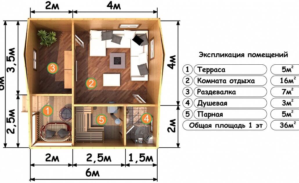 Планировка бани 3х5 мойка и парилка отдельно и комната отдыха