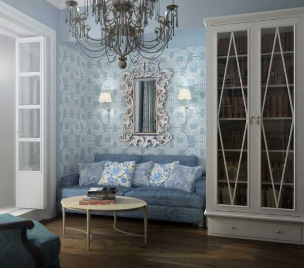 Стены можно оформить в голубом цвете – «прованский» вид такой стене обеспечен