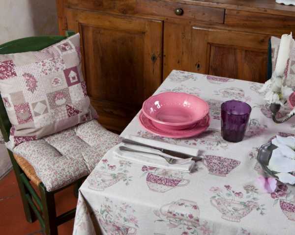 Главное отличие стилистики от подобных направлений — обилие текстиля. Это не только занавеси на окнах, но и скатерти, ажурные салфетки ручной работы, диванные подушки с ручной вышивкой. При выборе текстиля стоит отдать предпочтение натуральным тканям с минимальной обработкой, так как естественность и приближенность к природе — основные черты стилистики. Грубый лен, хлопок, ситец, легкие струящиеся материалы и мешковина идеально вольются в оформление интерьера.
