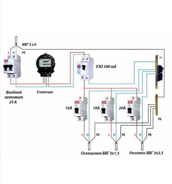 Что касается остальных автоматов, для розеток они могут быть рассчитаны на 16 А, а для группы освещения на 10 А. По-хорошему нужно рассчитать токовую нагрузку на жилой дом и подобрать наиболее подходящие характеристики автоматического выключателя. Розетки нужно обязательно защитить от утечек тока устройством защитного отключения либо дифавтоматом.
