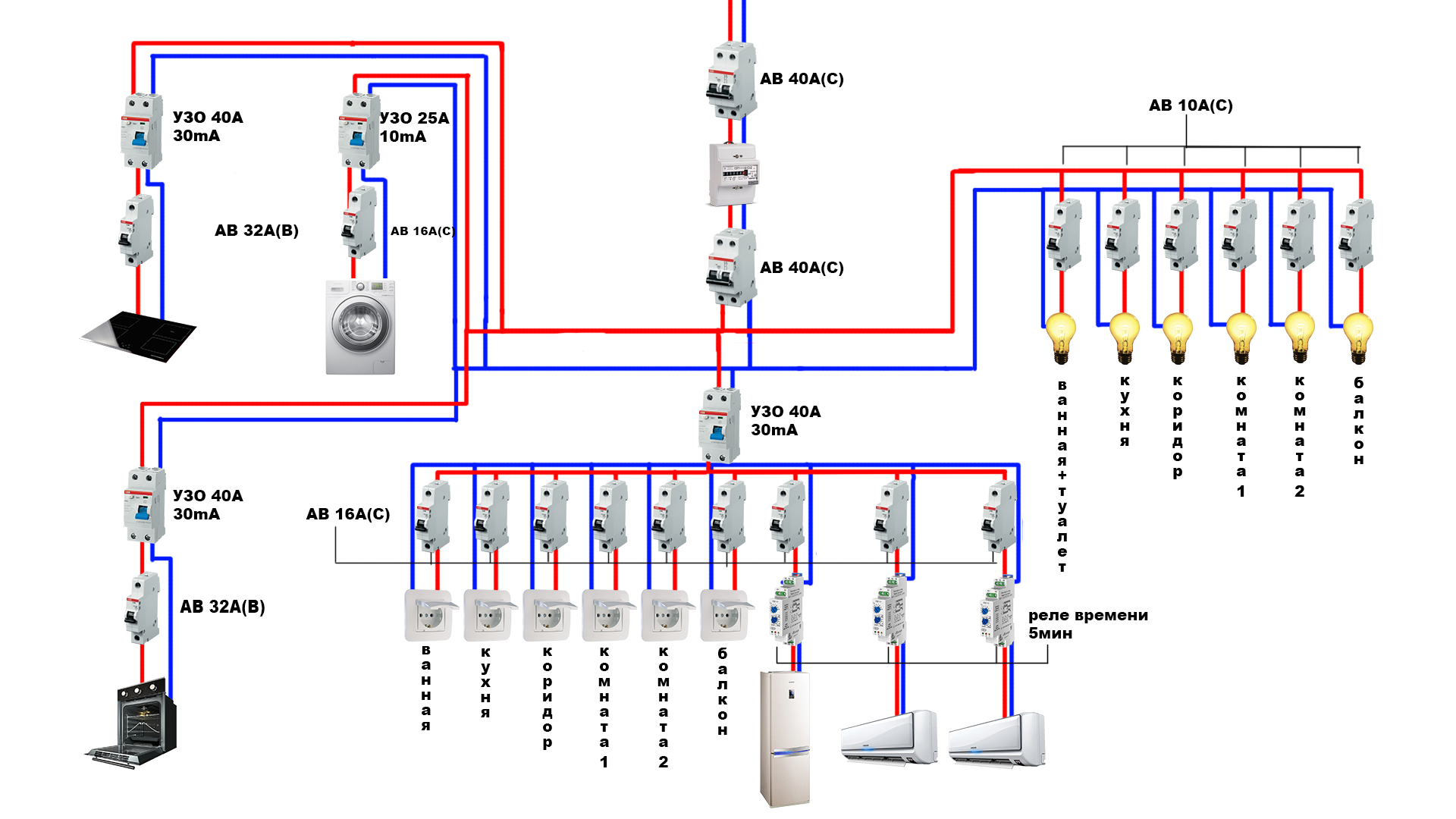 Обратите внимание, что схема разводки электропроводки в доме учитывает фазность проводки.