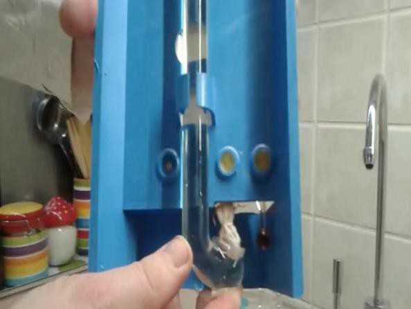 - Тканевый питатель снять с нижнего резервуара термометра с красноватой жидкостью.