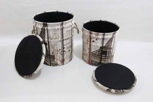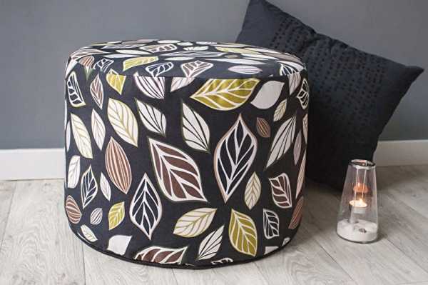 Если вы решите самостоятельно создавать не только основу пуфа, но и чехол, тогда нужно сделать листовую выкройку. Для изделий цилиндрического типа ею станет круг и широкая полоса, равная высоте пуфа. Для кубических – такая же полоса, но в сочетании с квадратом. Не стоит забывать, что чехол можно декорировать с помощью боковых карманов, ярких пуговиц, необычных бусин или пайеток.