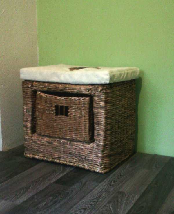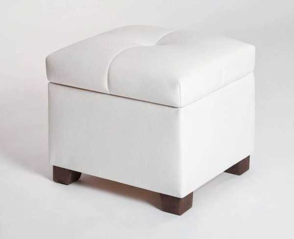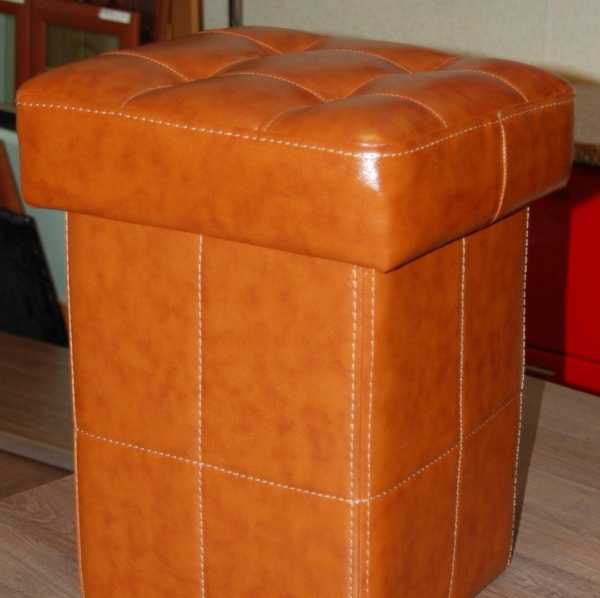 Пуф в виде коробки представляет собой сундук с откидным верхом. Внутри можно что-либо хранить, а крышка используется в качестве сиденья.