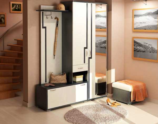 Готовые прихожие в коридор с пуфиком представлены в нескольких вариациях:
