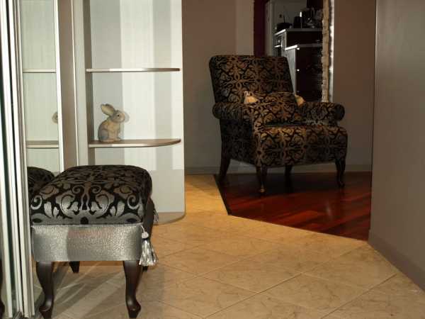 Обивка также выбирается индивидуально по личным предпочтениям покупателя. Это может быть шелк, бархат, велюр, жаккард. Первые два вида тканей очень приятны на ощупь, но требуют тщательного ухода. Велюр и жаккард идеально подходят для малогабаритных пуфиков в прихожую. Очень оригинально и стильно будет смотреться кожаная обивка.