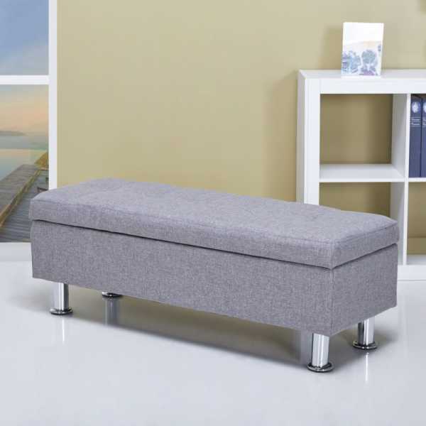 Еще один удобный пуфик в прихожую с ящиком для обуви изготавливается в виде скамейки или кушетки. Чаще всего такие скамейки изготавливаются на низких ножках. Пуфик-скамейку может заменить собой традиционную мебель для прихожей. Рядом можно поставить узкий шкаф или закрепить вешалку с крючками для верхней одежды. Пуфики-кушетки могут быть: