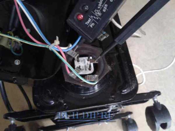 Прежде всего, визуально осматривают целостность электрокабеля. Если видимых повреждений нет, необходимо сначала демонтировать с нижней части корпуса агрегата стойки с колёсами.