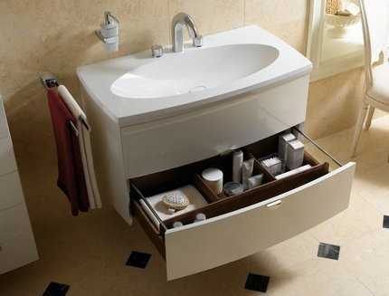 - ΠΠ½ΡΠ΅Π³ΡΠΈΡΠΎΠ²Π°Π½Π½ΡΠ΅. ΠΡΠΈ ΡΠ°ΠΊΠΎΠ²ΠΈΠ½Ρ Π²ΡΡΡΠ°ΠΈΠ²Π°Π΅ΠΌΡΠ΅ ΠΈΠ»ΠΈ Π² ΡΠΎΡΡΠ°Π²Π΅ ΠΌΠ΅Π±Π»ΠΈΡΠΎΠ²ΠΊΠΈ Π΄Π»Ρ Π²Π°Π½Π½ΠΎΠΉ ΠΊΠΎΠΌΠ½Π°ΡΡ, ΠΈΠ»ΠΈ Π² Π½Π°Π±ΠΎΡΠ΅ ΡΠΎ ΡΡΠΎΠ»Π΅ΡΠ½ΠΈΡΠ΅ΠΉ. Π’Π°ΠΊ, ΡΡΠΌΠ±ΠΎΡΠΊΠ°, ΡΠ°ΡΠΏΠΎΠ»ΠΎΠΆΠ΅Π½Π½Π°Ρ ΠΏΠΎΠ΄ ΡΠΌΡΠ²Π°Π»ΡΠ½ΠΈΠΊΠΎΠΌ, Π½Π΅ ΡΠΎΠ»ΡΠΊΠΎ ΠΏΡΡΡΠ΅Ρ ΡΠ»ΠΈΠ² ΠΈ ΡΡΡΠ±Ρ, Π½ΠΎ ΠΈ Π΄Π°Π΅Ρ ΠΏΡΠΎΡΡΡΠ°Π½ΡΡΠ²ΠΎ Π΄Π»Ρ ΡΠ±Π΅ΡΠ΅ΠΆΠ΅Π½ΠΈΡ Π²Π°Π½Π½ΡΡ ΠΏΡΠΈΡΠΏΠΎΡΠΎΠ±Π»Π΅Π½ΠΈΠΉ. Π ΡΠΈΡΠΎΠΊΠ°Ρ ΠΊΠΎΠΌΡΠΎΡΡΠ½Π°Ρ ΡΡΠΎΠ»Π΅ΡΠ½ΠΈΡΠ° Π³ΠΎΡΠΎΠ²ΠΈΡ ΠΏΡΠΎΡΡΡΠ°Π½ΡΡΠ²ΠΎ Π΄Π»Ρ ΡΠΌΡΠ²Π°Π½ΠΈΡ Π±ΠΎΠ»Π΅Π΅ ΡΠ΄ΠΎΠ±Π½ΡΠΌ ΠΈ Π°ΠΊΡΠΈΠ²Π½ΡΠΌ. Π’Π°ΠΊΠΈΠ΅ ΡΠΌΡΠ²Π°Π»ΡΠ½ΠΈΠΊΠΈ ΠΈ Ρ ΡΡΡΠ΅ΡΠΈΡΠ΅ΡΠΊΠΎΠΉ ΡΠΎΡΠΊΠΈ Π·ΡΠ΅Π½ΠΈΡ ΡΠΌΠΎΡΡΡΡΡΡ Π³ΠΎΡΠ°Π·Π΄ΠΎ ΠΊΡΠ°ΡΠΈΠ²Π΅ΠΉ.
