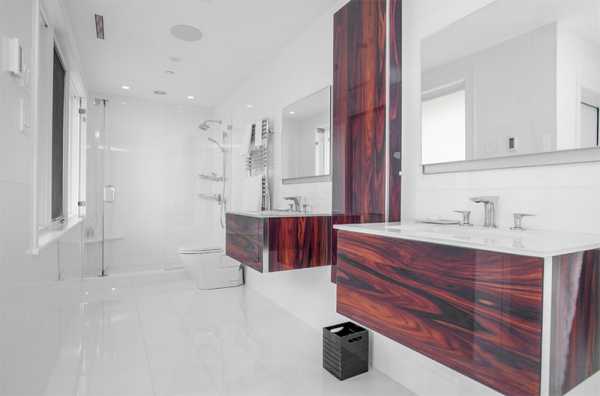 Π Π²Π°Π½Π½ΠΎΠΉ, ΡΠ΅ΠΌ Π±ΠΎΠ»Π΅Π΅ Π² ΠΏΠΎΡΠ»Π΅Π΄ΡΡΠ²ΠΈΠΈ ΠΏΡΠΈΠ½ΡΡΠΈΡ Π°ΠΊΠ²Π° ΠΏΡΠΎΡΠ΅Π΄ΡΡ, ΡΠ°ΡΡΠΎ Π½Π°Π±Π»ΡΠ΄Π°Π΅ΡΡΡ Π·Π°Π²ΡΡΠ΅Π½Π½Π°Ρ Π²Π»Π°ΠΆΠ½ΠΎΡΡΡ. ΠΡΠ»Π΅Π΄ΡΡΠ²ΠΈΠ΅ ΡΡΠΎΠ³ΠΎ ΠΌΠ΅Π±Π»ΠΈΡΠΎΠ²ΠΊΠ° Π΄Π»Ρ Π²Π°Π½Π½ΠΎΠΉ ΠΊΠΎΠΌΠ½Π°ΡΡ ΠΎΠ±ΡΠ·Π°ΡΠ΅Π»ΡΠ½Π° Π΄ΠΎΠ»ΠΆΠ½Π° Π±ΡΡΡ Π²Π»Π°Π³ΠΎΡΡΡΠΎΠΉΡΠΈΠ²Π° ΠΈ ΡΡΡΠΎΠΉΡΠΈΠ²Π° ΠΊ ΠΏΠ΅ΡΠ΅ΠΏΠ°Π΄Π°ΠΌ ΡΠ΅ΠΌΠΏΠ΅ΡΠ°ΡΡΡ. Π ΠΎΡΠ½ΠΎΠ²Π½ΠΎΠΌ, ΡΡΠΌΠ±Ρ ΡΠ³Π»ΠΎΠ²ΡΠ΅ Π΄Π»Ρ Π²Π°Π½Π½ΠΎΠΉ ΠΊΠΎΠΌΠ½Π°ΡΡ ΠΏΡΠΎΠΈΠ·Π²ΠΎΠ΄ΡΡΡΡ ΠΈΠ· Π½Π°ΡΡΡΠ°Π»ΡΠ½ΠΎΠ³ΠΎ Π΄Π΅ΡΠ΅Π²Π° ΠΈ Π²Π»Π°Π³ΠΎΡΡΠΎΠΉΠΊΠΈΡ ΠΏΠ°Π½Π΅Π»Π΅ΠΉ ΠΠΠ€ ΠΈ ΠΠ‘Π. Π’ΡΠΌΠ±Ρ ΠΈΠ· Π΄Π΅ΡΠ΅Π²Π° Π±ΡΠ΄ΡΡ ΡΡΠΎΠΈΡΡ Π½Π΅ΡΠΎΠΌΠ½Π΅Π½Π½ΠΎ Π΄ΠΎΡΠΎΠΆΠ΅, ΡΠ΅ΠΌ ΠΈΠ· ΠΈΠ½ΡΡ ΠΌΠ°ΡΠ΅ΡΠΈΠ°Π»ΠΎΠ². ΠΡΠ΅Π²Π΅ΡΠ½Π°Ρ ΠΌΠ΅Π±Π»ΠΈΡΠΎΠ²ΠΊΠ° ΠΏΡΠΎΠΈΠ·Π²ΠΎΠ΄ΠΈΡΡΡ Π½Π΅ ΠΈΠ· ΡΠ΅Π»ΠΎΠ³ΠΎ ΠΌΠ°ΡΡΠΈΠ²Π° Π΄Π΅ΡΠ΅Π²Π°, Π° ΠΈΠ· Π½Π΅ΡΠΊΠΎΠ»ΡΠΊΠΈΡ ΡΠΏΡΠ΅ΡΡΠΎΠ²Π°Π½Π½ΡΡ ΡΠ»ΠΎΠ΅Π², ΠΊΠΎΡΠΎΡΡΠ΅ ΠΏΠΎΠΊΡΡΠ²Π°ΡΡΡΡ Π³ΠΈΠ΄ΡΠΎΡΡΠΎΠΉΠΊΠΎΠΉ ΠΏΡΠΎΠΏΠΈΡΠΊΠΎΠΉ. ΠΡΠΎΠΏΠΈΡΠΊΠ° ΠΌΠΎΠΆΠ΅Ρ ΠΏΠΎΠΊΡΡΡΡ ΡΠΎΠ»ΡΠΊΠΎ ΠΏΠΎΠ²Π΅ΡΡ Π½ΠΎΡΡΠ½ΡΠΉ ΡΠ»ΠΎΠΉ.