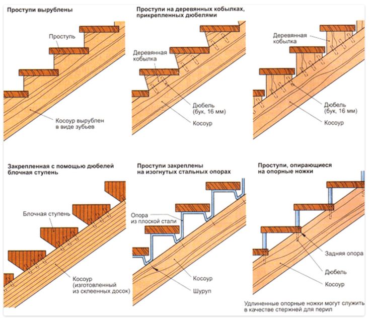 Широко представлено разнообразие возможных типов: винтовые, маршевые, комбинированные. Для удобства их классифицируют по разновидностям несущего элемента. Это могут быть косоуры, больцы, тетивы и другие – более редкие, но тоже встречающиеся элементы.