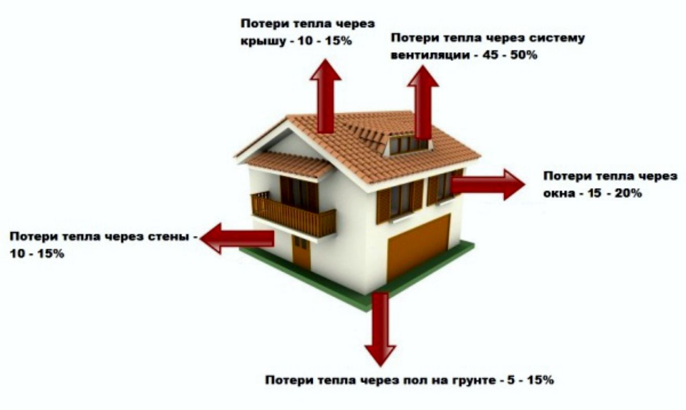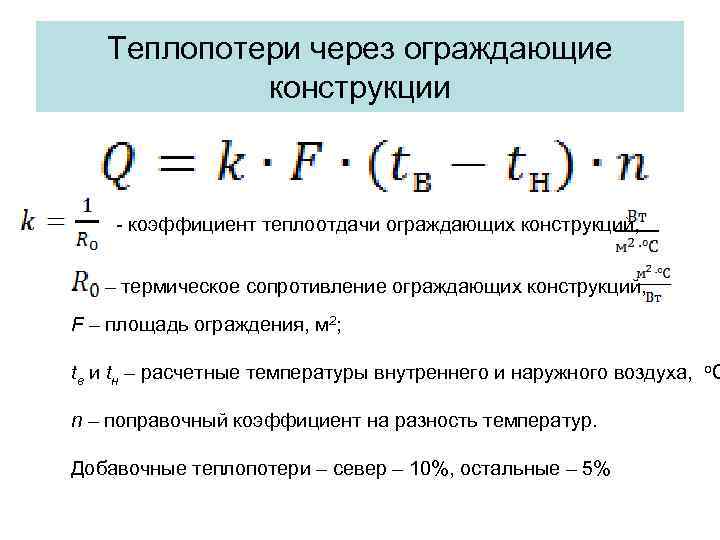 Воздух внутри помещений остывает за счет потерь тепловой энергии через ограждающие конструкции строения, которые характеризуются термическими сопротивлениями, измеряемыми в м 2·°С/Вт: