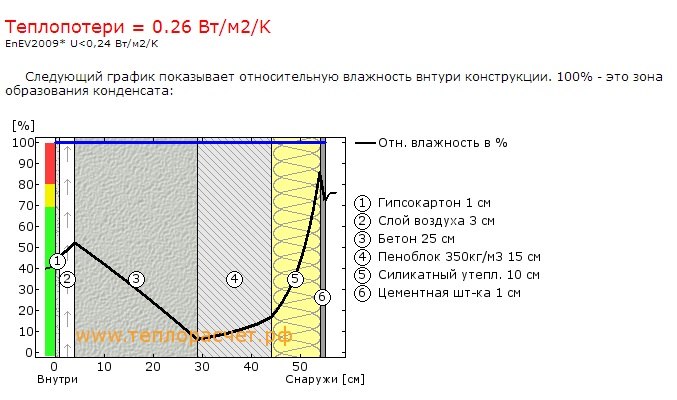 - Влажность внутреннего воздуха — предполагаемая влажность внутреннего воздуха помещения. При разной влажности материалы стен обладают различной теплопроводностью.