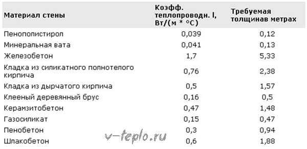 Также у нас есть показатели теплопроводности самих утеплительных материалов. Например, у пенопласта он находится 0,035 Вт/м. Данные берутся с таблиц.