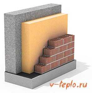 Пример: стена из силикатного кирпича толщиной в 0,5 м, которая утепляется пенопластом.