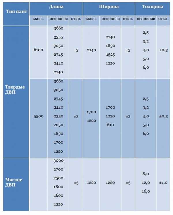 Стандартный размер листа ДВП в таблице, разновидности и цена