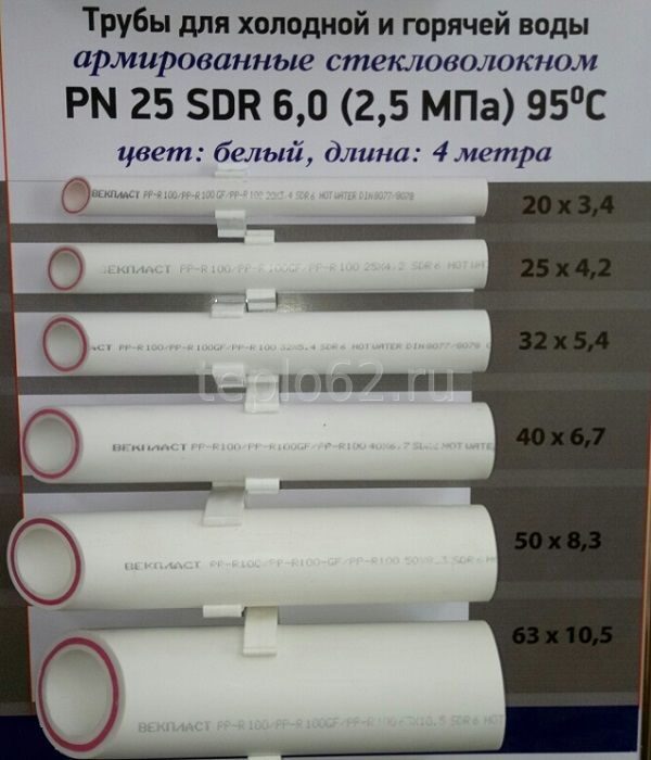 Размеры полипропиленовых труб для отопления