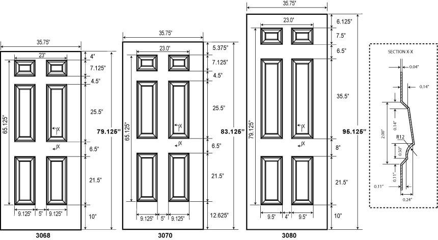 Размеры французских дверей | 80 дюймов | 36 дюймов | 1 ¾ ” | 84 дюйма, 96 дюймов, 24–42 дюйма |
