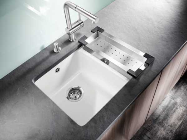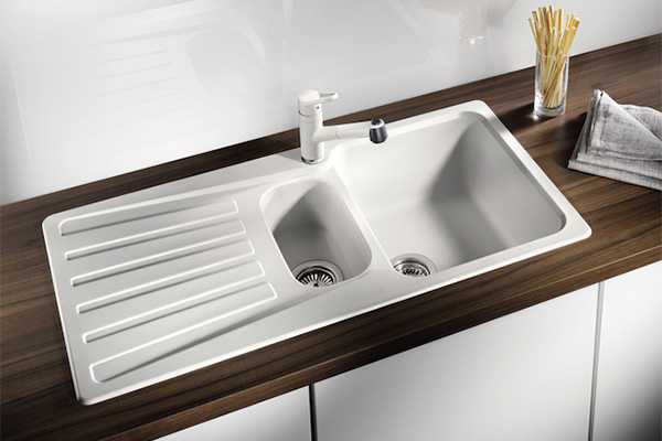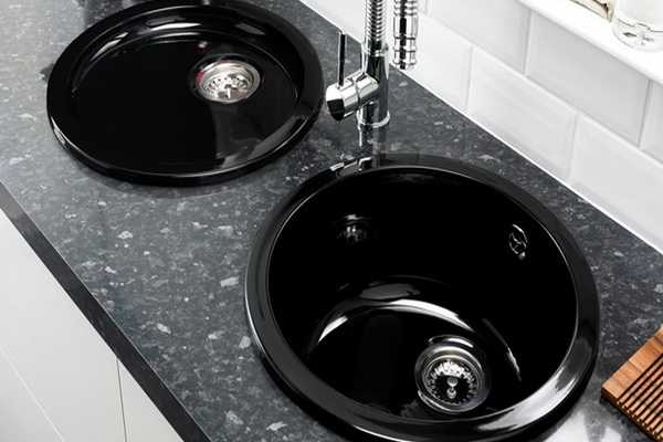 Керамические модели имеют солидный дизайн, придают кухне особый лоск. Размеры чаши зависят от предпочтений хозяйки, габаритов гарнитура, количества чаш, дополнительного элемента для сушки посуды. Керамические модели имеют большой вес из-за толщины исходного материала.