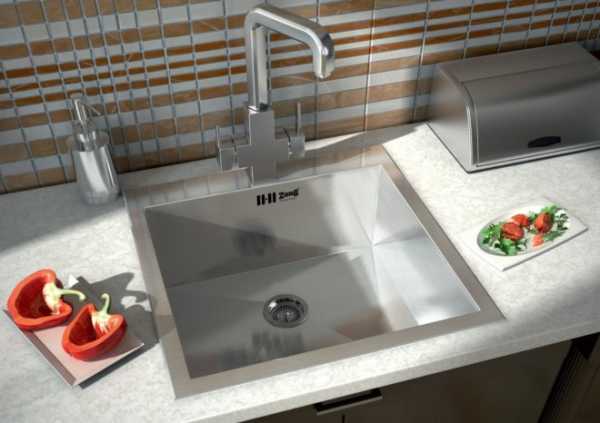 Брызги от стальной поверхности разлетаются по краям. Поэтому выбирать необходимо глубокую чашу. Отличается нержавейка от других моек размером отверстия под кран. Оно меньше и некоторые смесители могут не подойти.